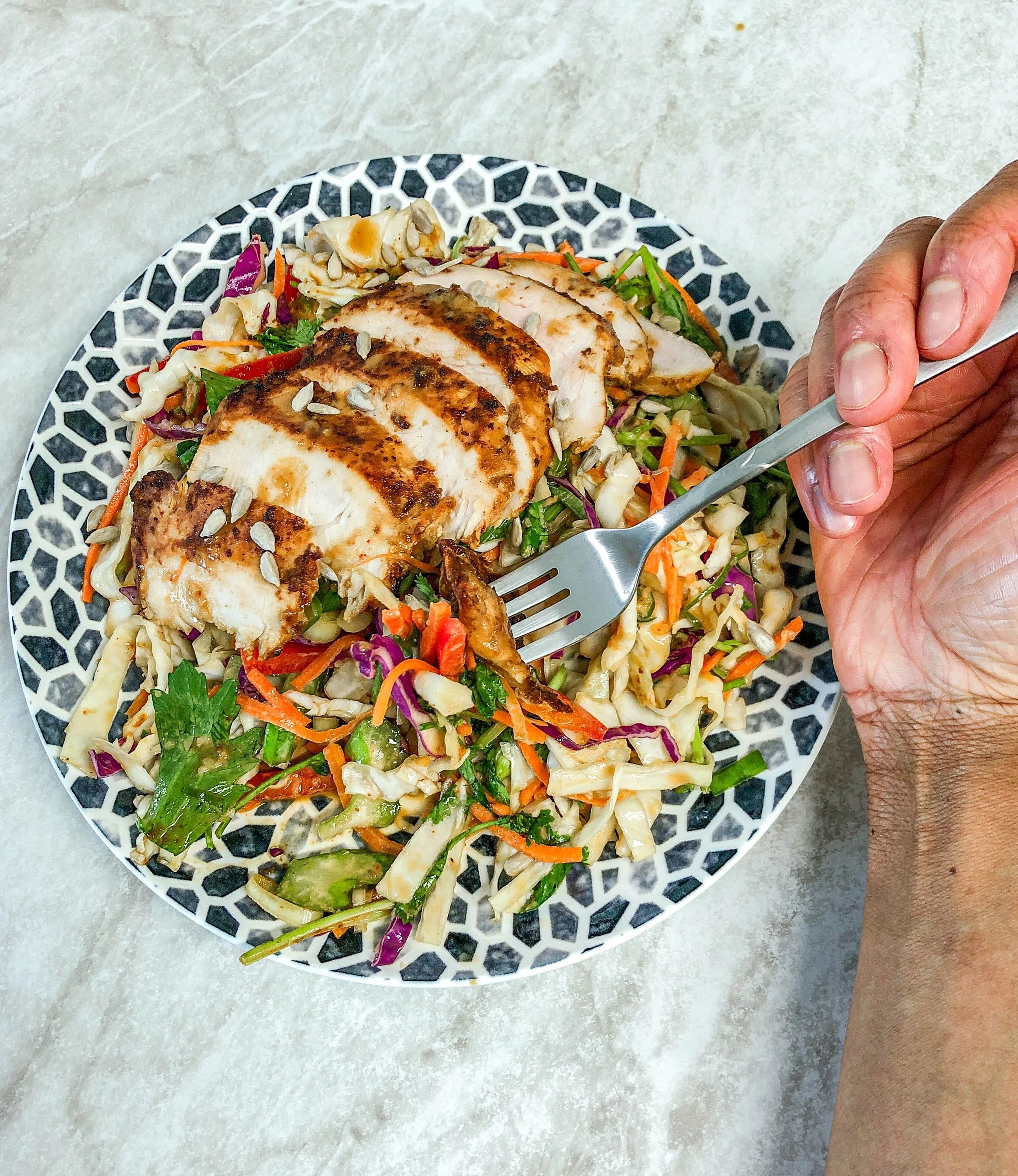 Who says salad is only for the summer? This salad pairs warm chicken with hearty cabbage, simple vegetables and a creamy dressing to make a winter salad you’ll crave anytime of year.