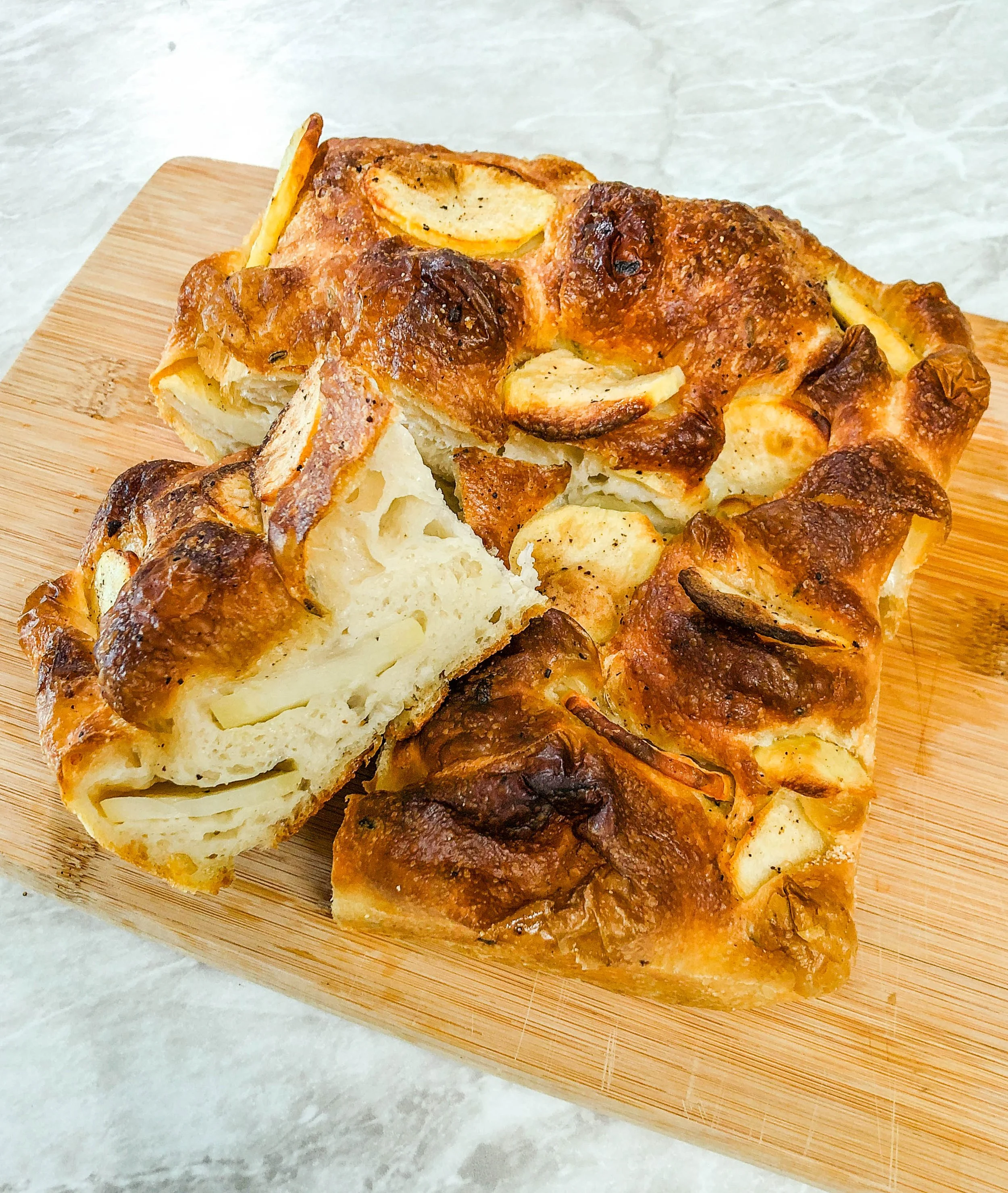 Insanely fluffy focaccia with tender potatoes and pops of fennel with a crunchy top and silky interior.