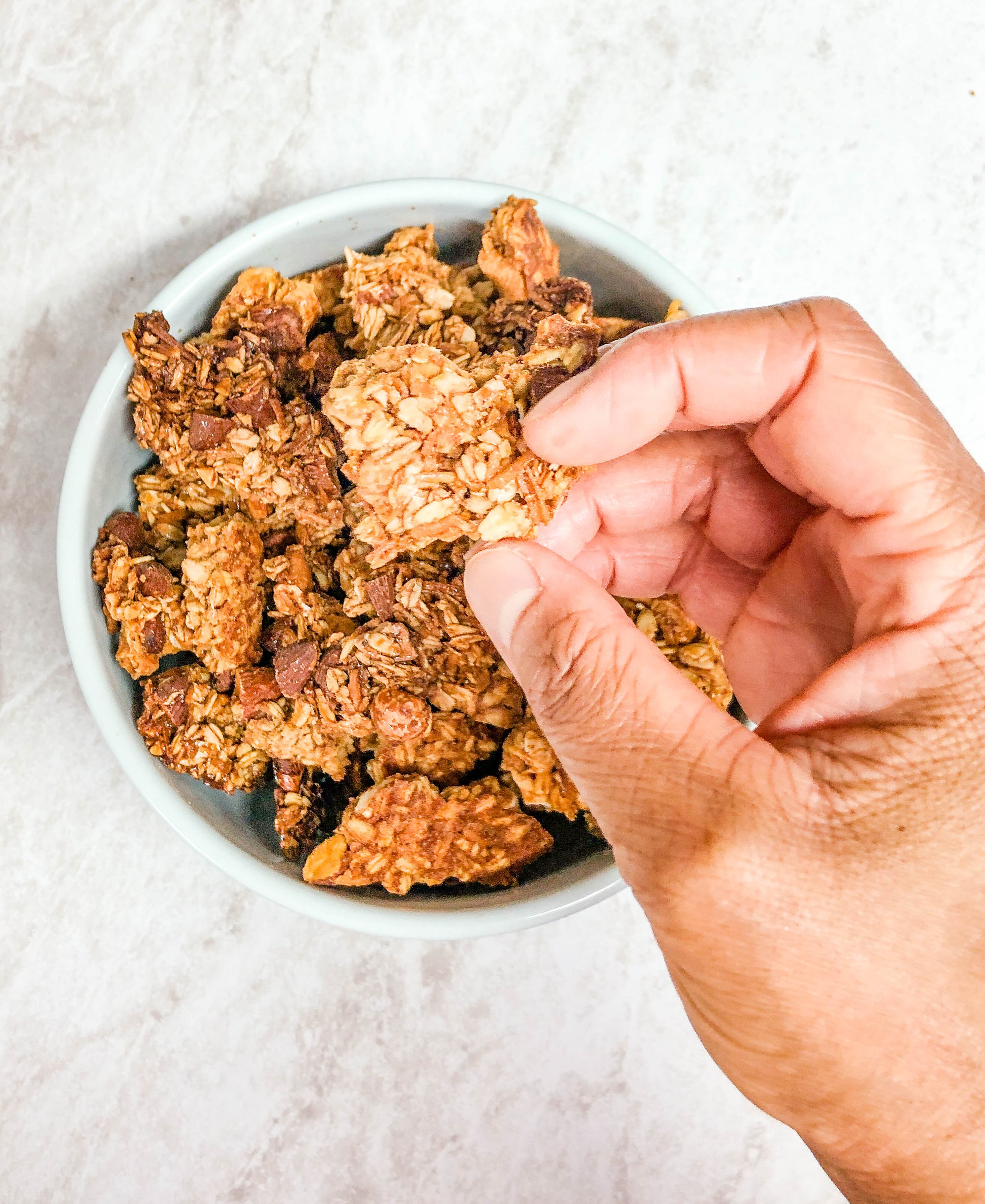 Remove from the oven and carefully flip the granola over.
