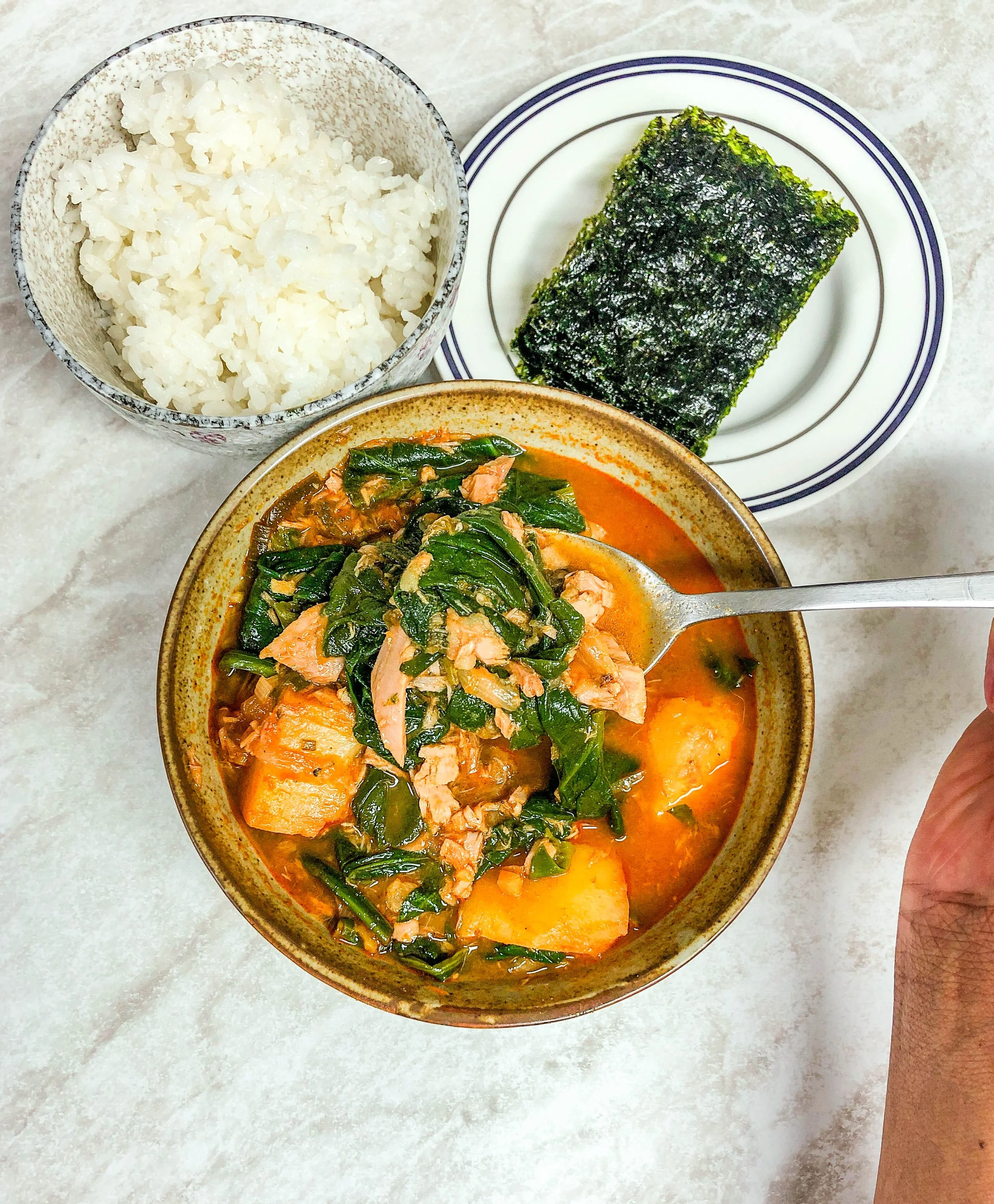 This stew is an update of my original Spicy Tuna Stew (recipe here). It is mostly the same recipe with a few tweaks that I think make it better. It is hearty, super satisfying and addictive.